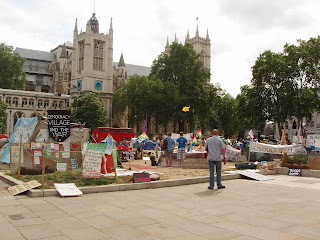 Recordo, por exemplo, um acampamento em Londres que observei em Julho de 2010, (uns meses antes dos acampamentos indignados - que merda de nome) ali bem no centro político da cidade. Não me recordo porém de o ver na TV, muito menos
